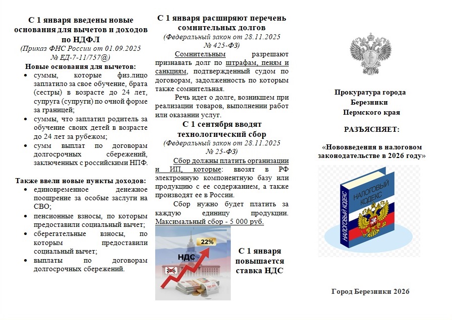 Буклет "Изменения налогового законодательства в 2026 году"