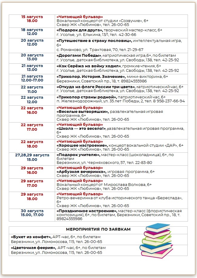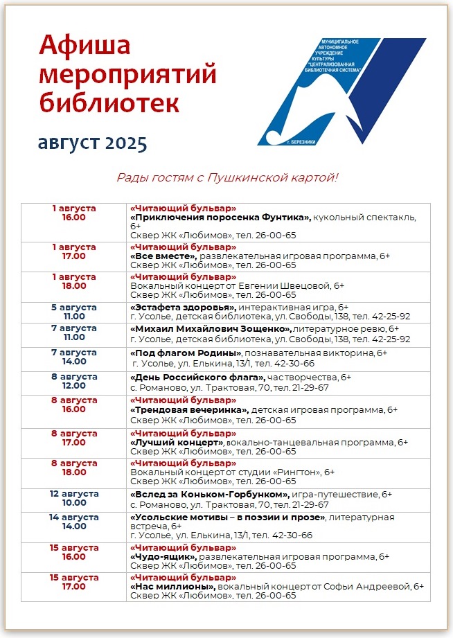 Афиша библиотечных мероприятий на АВГУСТ-2025