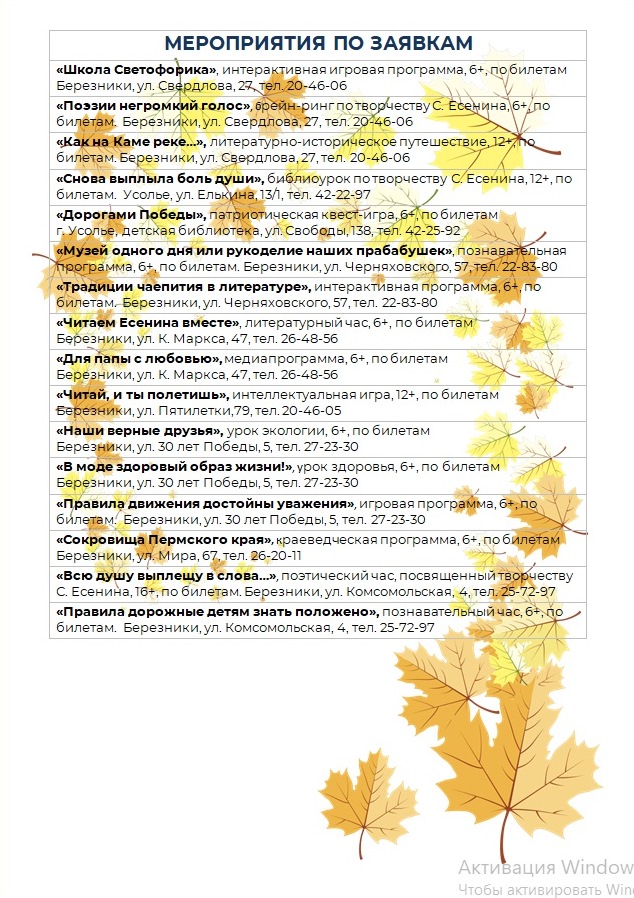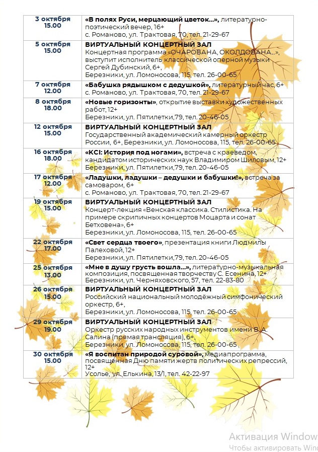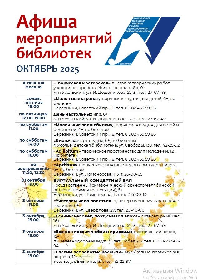 Афиша мероприятий на ОКТЯБРЬ-2025