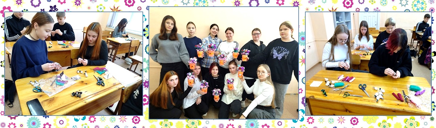 Финальным аккордом работы стало изготовление «флористических конвертиков» для придания композиции объёма и завершённого вида. Будем считать, что весну ребята уже позвали. Осталось дождаться, когда она откликнется птичьими трелями и тёплыми лучами мартовского солнца.