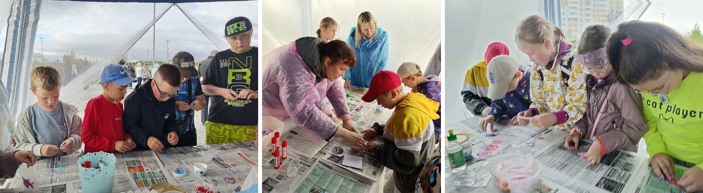 В течение всего вечера на творческой площадке кипела работа. Сотрудники Централизованной библиотечной системы провели для ребят два интересных мастер-класса: по созданию блокнотика ко Дню Флага и по изготовлению оригинальных значков.