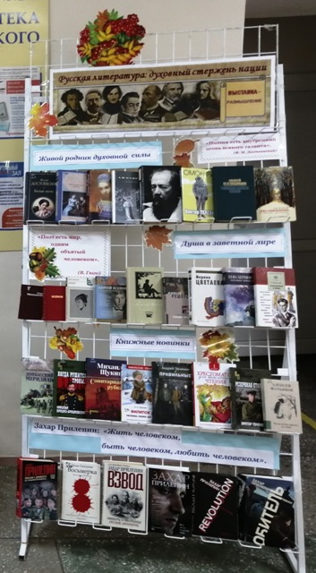 На выставке представлены книжные новинки года. Отдельный блок выставки посвящен современному русскому писателю и общественному деятелю Захару Прилепину. Для всех желающих библиотекарь может провести беседу и рассказать о его жизни, творчестве, обсудить роман «Обитель».
