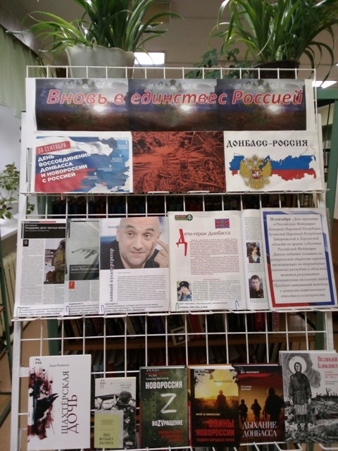 В рамках этой памятной даты, в Центральной городской библиотеке была оформлена выставка, посвященная воссоединению Донбасса и Новороссии с Россией.