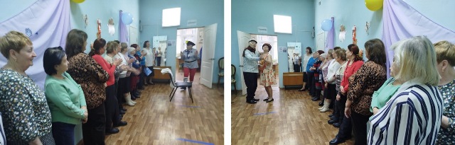 Клуб поздравили заведующая библиотекой № 5 Н. Н. Высотина и председатель ветеранской организации и микрорайона № 3 В. В. Сычева, вручив благодарственное письмо и замечательный подарок - музыкальную колонку, очень нужную для работы.