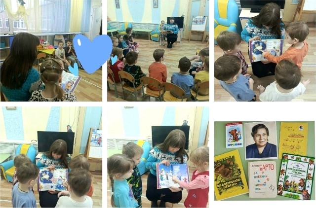 Дошкольники МАДОУ № 14 (воспитатели Н. В. Рябова, О. Г. Юнусова, А. А. Богатырева) с удовольствием поучаствовали в медиапрограмме "Весёлый друг детства" библиотеки № 5. Дети посмотрели презентацию о жизни и творчестве Агнии Львовны. Поиграли в стихотворную игру "Путаница". Вспомнили её простые стихи. Было шумно и весело от детских голосов, читающих знакомые строки. Воспитанники корпуса № 1 нарисовали героев стихотворений А. Л. Барто.