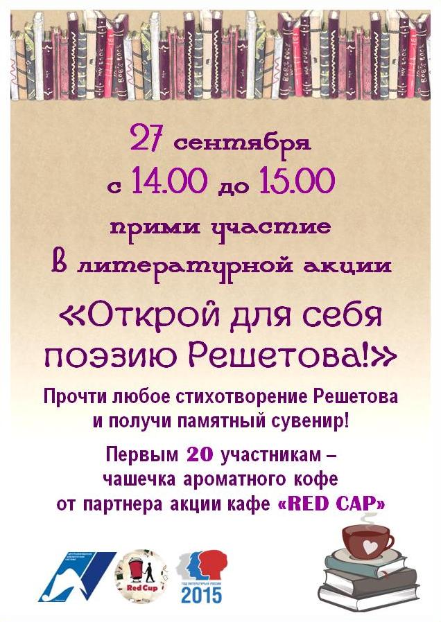 Литературная акция 27 сентября с 14.00 до 15.00 в ТРЦ "Оранж молл"!