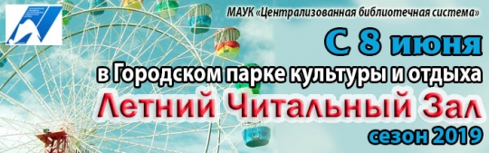 читальные залы8 июня 2019 года в Городском парке культуры и отдыха состоится церемония открытия Летних Читальных Залов. Приглашаем взрослых и детей на наш праздник!  Начало в 14.00.